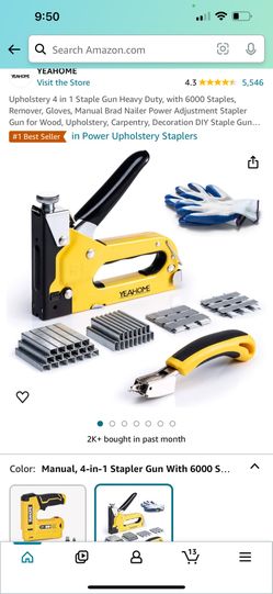 Upholstery 4 in 1 Staple Gun Heavy Duty, with 6000 Staples, Remover, Gloves, Manual Brad Nailer Power Adjustment Stapler Gun for Wood, Upholstery, Car$35Boston, MA