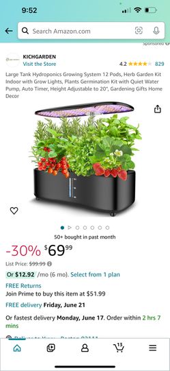 Large Tank Hydroponics Growing System 12 Pods, Herb Garden Kit Indoor with Grow Lights, Plants Germination Kit with Quiet Water Pump, Auto Timer, Heig$40Boston, MA