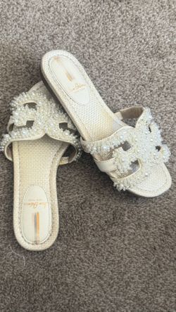 Jack Rogers Cream Pearl-Embellished Slide Sandals$8Waynesboro, PA