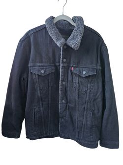 Levi’s Sherpa Lined Trucker Jacket Men XXL Black Denim Fleece Lined$55South Gate, CA
