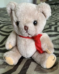 Vintage 1990's Light Brown Jointed 5" Mini Plush Bear With Red Ribbon Lixin Co$15Naples, FL