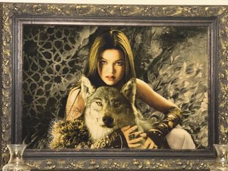Handmade Persian Merino Wool and Silk Tableau Rug, Hand-knotted Persian Carpet, wall carpet, wolf and girl pattern$950Las Vegas, NV