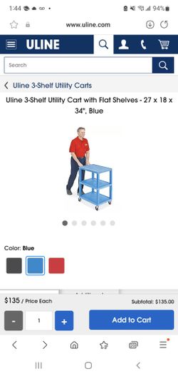 Uline 3-Shelf Utility Cart with Flat Shelves - 27 x 18 x 34", Blue$60Tampa, FL