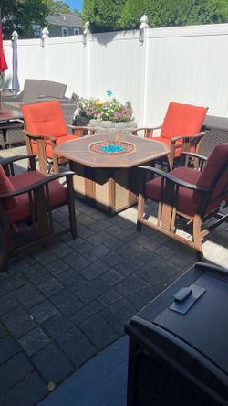Outdoor Patio Fire Pit and 4 Rocking Chairs $300Bohemia, NY