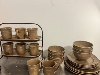 26 Piece Pottery Barn Portugal Cambria Mushroom 8 Cups Display Stand 7 Bowls 4 Small 4 Large Plates$250Bakersfield, CA