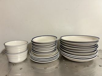 Dinner Indigo by Thompson Pottery Set of 24 Dinnerware Serveware Plates and Bowls Blue and White 2 Soup Bowls 8 small bowls 4 medium bowls 10 larg$250Bakersfield, CA