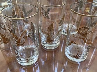 FLYING GEESE DUCKS VINTAGE SET OF 8 GOLD RIM RIMED DRINKING GLASSES, LIBBEY?$20San Leandro, CA