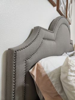 $150 King Size headboard Grey LINEN/ Nickel Nailhead $150Alton, TX