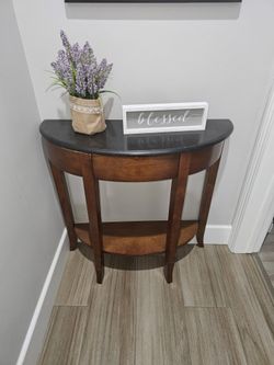 “Half‑Moon Entry Table with Black Stone Top – Solid Wood$150Monterey Park, CA