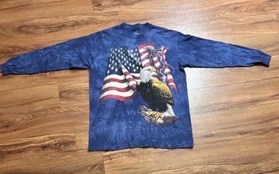 The Mountain Long Sleeve 2001 Shirt Men L Bald Eagle American Flag USA Blue Vtg Y2K$65Peoria, AZ