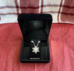 Silver Tone Cubic Zirconia Necklace Snowflake Pendant With Stud Earrings Set$40Las Cruces, NM