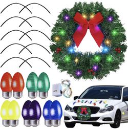 Christmas Car Wreath Magnetic Decorations Set with Artificial Car Wreath LED Light Reflective Bulb Light Shaped Car Magnets and Magnet Wires for Xmas $50Los Angeles, CA