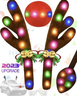 Reindeer Antlers for Cars, Car Reindeer Antlers & Nose with LED Multicolor Lights Jingle Bells, Car Christmas Decorations Antlers Kit Auto Holiday Acc$50Los Angeles, CA