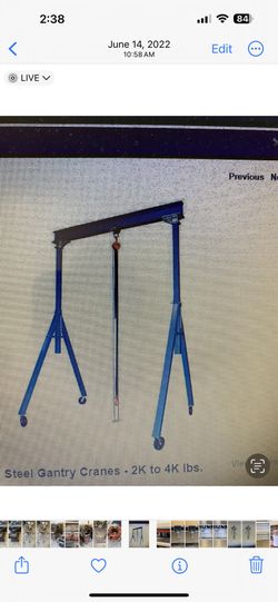 Vestil Model AHS-4-10-12 Adj Height Gantry Crane$1,000Lawrence, MA