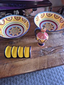 Pier1 Ceramic Serving Trays, Taco Holder And Vinegar Cruet Dispenser $75Houston, TX