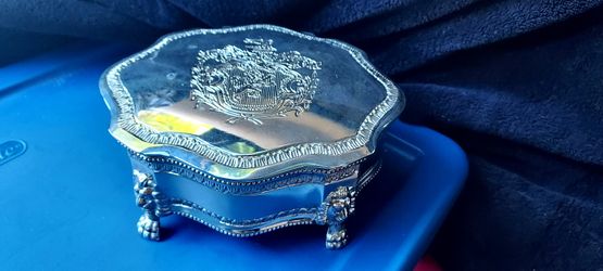 Antique Dieu Et Mon Droit British Royal Crest Silver Plate Trinket Jewelry Box $80Denver, CO