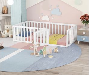 Twin Wood Floor Bed Frame w/ Fence & Door$100El Monte, CA