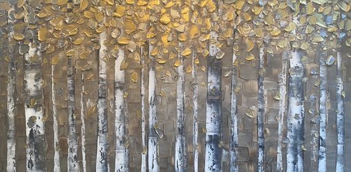 Original Palette Knife impasto Painting Gold Silver Mocha Mousse Birch Trees Landscape 48x24 By Susanna$385Stroudsburg, PA