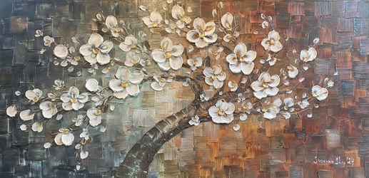 ORIGINAL painting Gold Silver White Flowers Brown Vase palette Knife Impasto textured By Susanna Shap$375Stroudsburg, PA