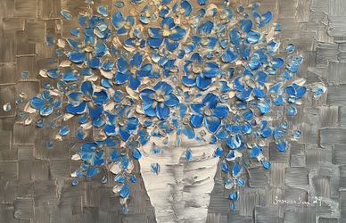 ORIGINAL painting on canvas palette knife impasto textured Blue flowers bouquet, White Vase, On Gray Abstract Art Painting by Susanna shap$375Stroudsburg, PA