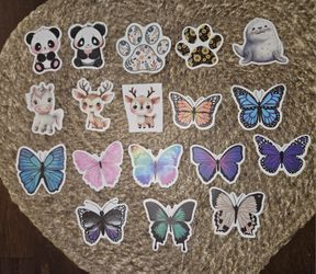 18 assorted stickers butterflies paws Reindeer unicorn seal pandas$4Winston-salem, NC