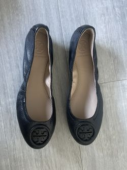 Tory Burch Women Allie Black Leather Ballet Flat Size 5 Elasticized Slip On Shoe$60Seattle, WA