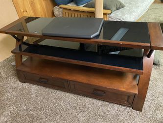 Cherry Wood Tv Stand With Black Glass$50Hauppauge, NY