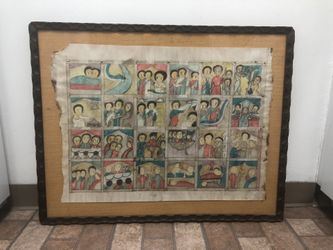 Ethiopian Oil On Goat Skin Tribal Painting Framed$500Hewlett, NY