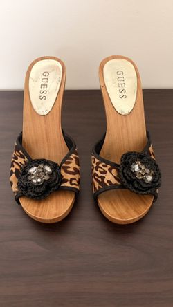 Guess Leopard Print Wedge Mules with Black Embellished Flower$20Bakersfield, CA