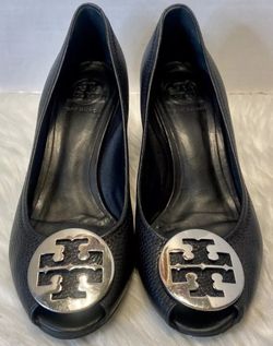 Tory Burch Peep Toe Black Leather Wedges Sally Heels, Size 9$65Oldsmar, FL