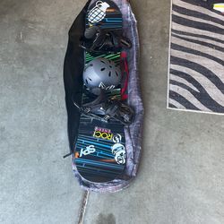 Snowboard with Bindings, Helmet, and Bag$100Danville, CA