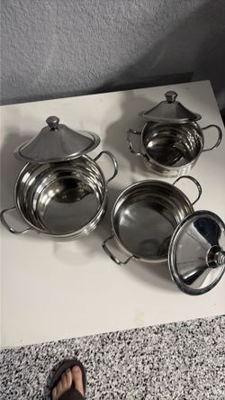 Stainless steel cooking pots with lids$10Lakeland, FL