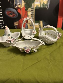 Set of 4 Vintage ceramic mini flower baskets one has a chipped ribbon$25Columbus, GA