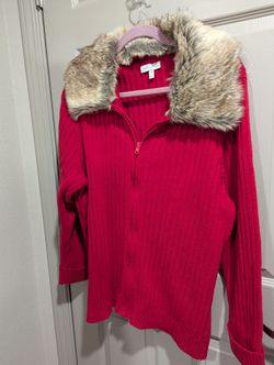RED FULL ZIP SWEATER WITH REMOVABLE COLLAR , Size 1x/2x$30North Las Vegas, NV