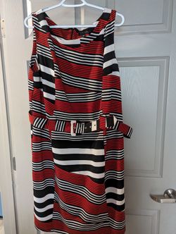 BLACK WHITE AND RED SLEEVELESS DRESS WITH BELT, SIZE 20W$10North Las Vegas, NV