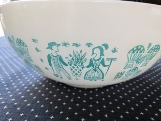 Vintage Pyrex Amish Butterprint Turquoise on White Pattern Nesting Cinderella 2 and 1/2 Quart Mixing Bowl 444$200Holbrook, NY