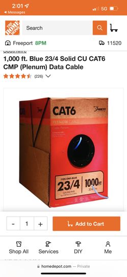 1,000 ft. Blue 23/4 Solid CU CAT6 CMP (Plenum) Data Cable$300Queens, NY