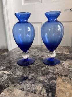 Blue and Clear Foot Hand Blown Glass Bud Vases-4 Available $20Riverhead, NY