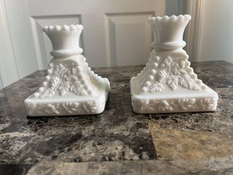 Square Grape Panel Milk Glass Candle Holders-Set Of 2$10Riverhead, NY