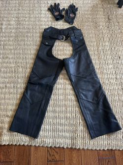 Women’s leather motorcycle chaps and gloves for sale $175Long Beach, CA