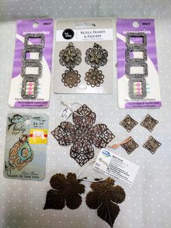 18 pcs of Antiqued Brass Filigree Pendants, Brass Leaves,Ā