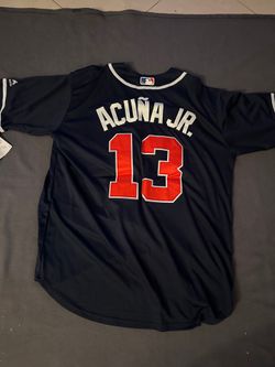 Majestic Atlanta Braves RONALD ACUNA JR. Baseball JERSEY ALTERNATE BLUE LARGE New $75Jurupa Valley, CA