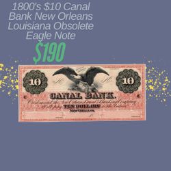 1800s 10 Dollar Louisiana Canal & Banking Co New Orleans Obsolete Banknote$190Columbus, OH