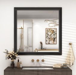 NIB Black Vanity Mirror for Wall, 32x32 Inch Square Mirror with Rectangle Corner, Thick Matte Frame Mirror for Living Room, Bedroom, Bathroom, Mantel,$70Everett, WA