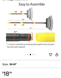 Leaf Rake, 30-61 inch Garden Rakes for Leaves Heavy Duty Long Handle, 25 Tines 18" Wide Metal Thatch Lawn Gravel Shrub Yard Landscape Rake for Leaves $12Palmdale, CA
