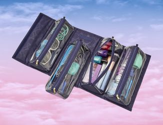 Navy Blue Large Beauty Case, travel cosmetic Rollup Organizer (Joy Mangano)