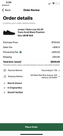 Jordan 1 Travis Scott Black Phantom $750Ventura, CA