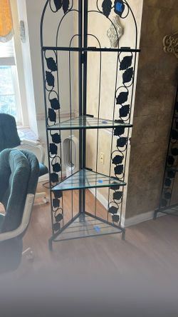 2 Black Metal Corner Shelf With Glass Shelving $55 Each$55East Hanover, NJ