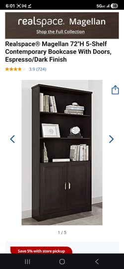 Realspace Magellan 72"H 5-Shelf Contemporary Bookcase With Doors, Espresso/Dark Finish$80Biscayne Park, FL