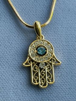 Ladies Crystal Hamsa Necklace with Blue Crystal Center on Snake Chain Gold Plate *Pickup Boca Raton$20Boca Raton, FL